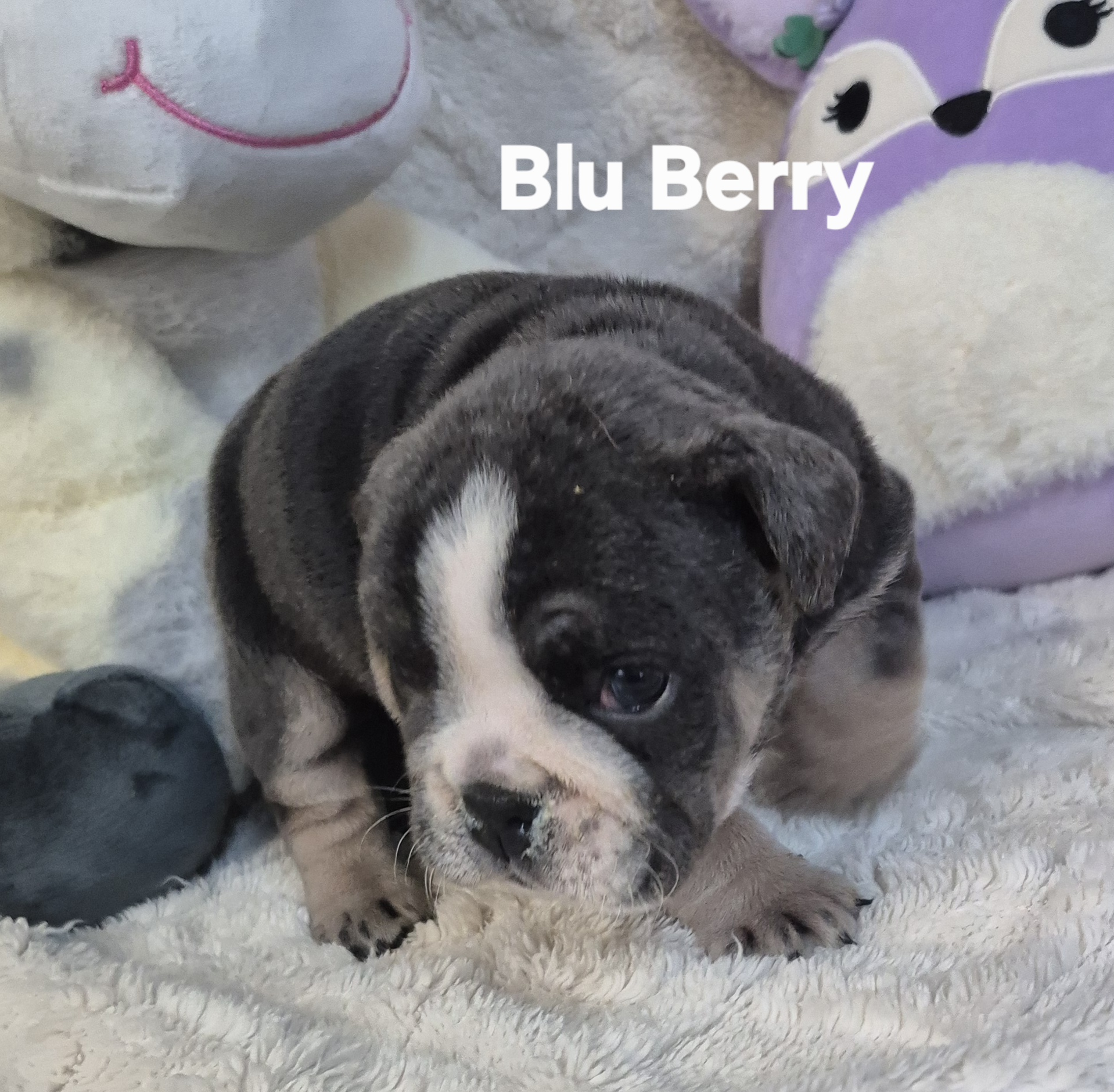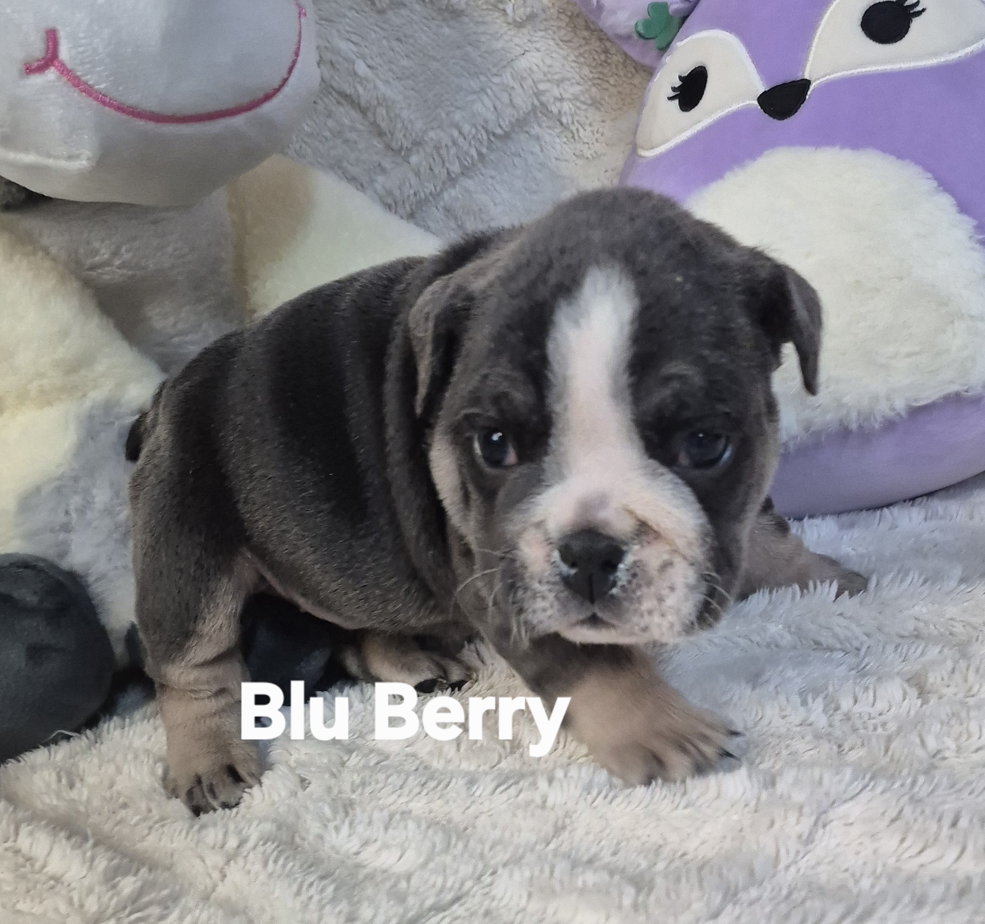 Blu Berry comes with Full AKC Registration, all vaccinations and wormings up to date and a one year Health Guarantee.  You are welcome to call 918-273-8052 or come and see her anytime.